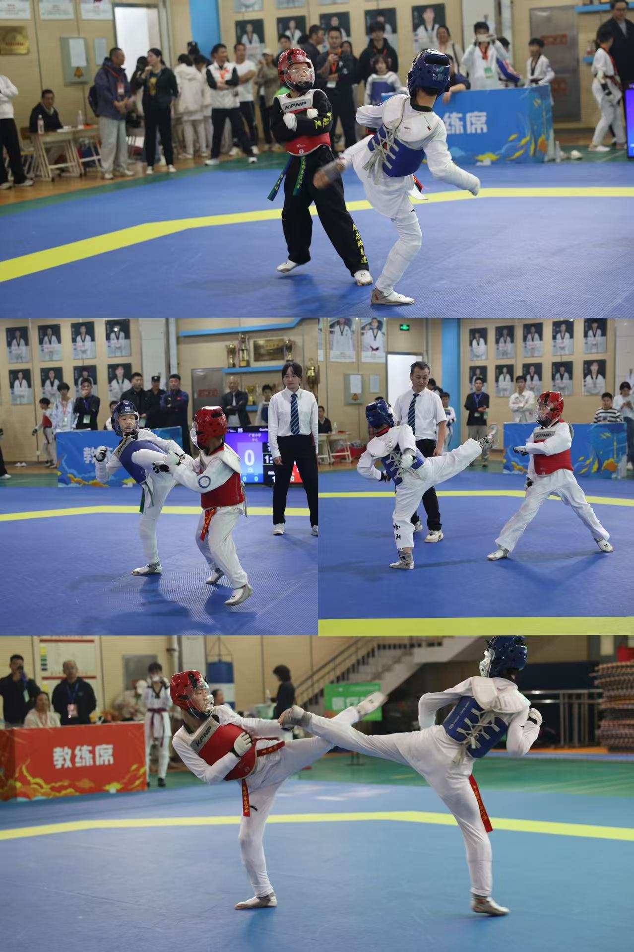 赛场上,选手们精神饱满、斗志昂扬,以规范的动作、敏捷的身手和出色的战术意识,充分展现了跆拳道运动“礼义廉耻、克己忍耐”的精神内涵与刚柔相济的技术特点。运动员们每一次有力的击打、每一次灵活的防守,不仅体现出扎实的训练功底,更彰显了顽强拼搏、永不言败的体育精神,为现场观众呈现了一场高水平的竞技盛宴。