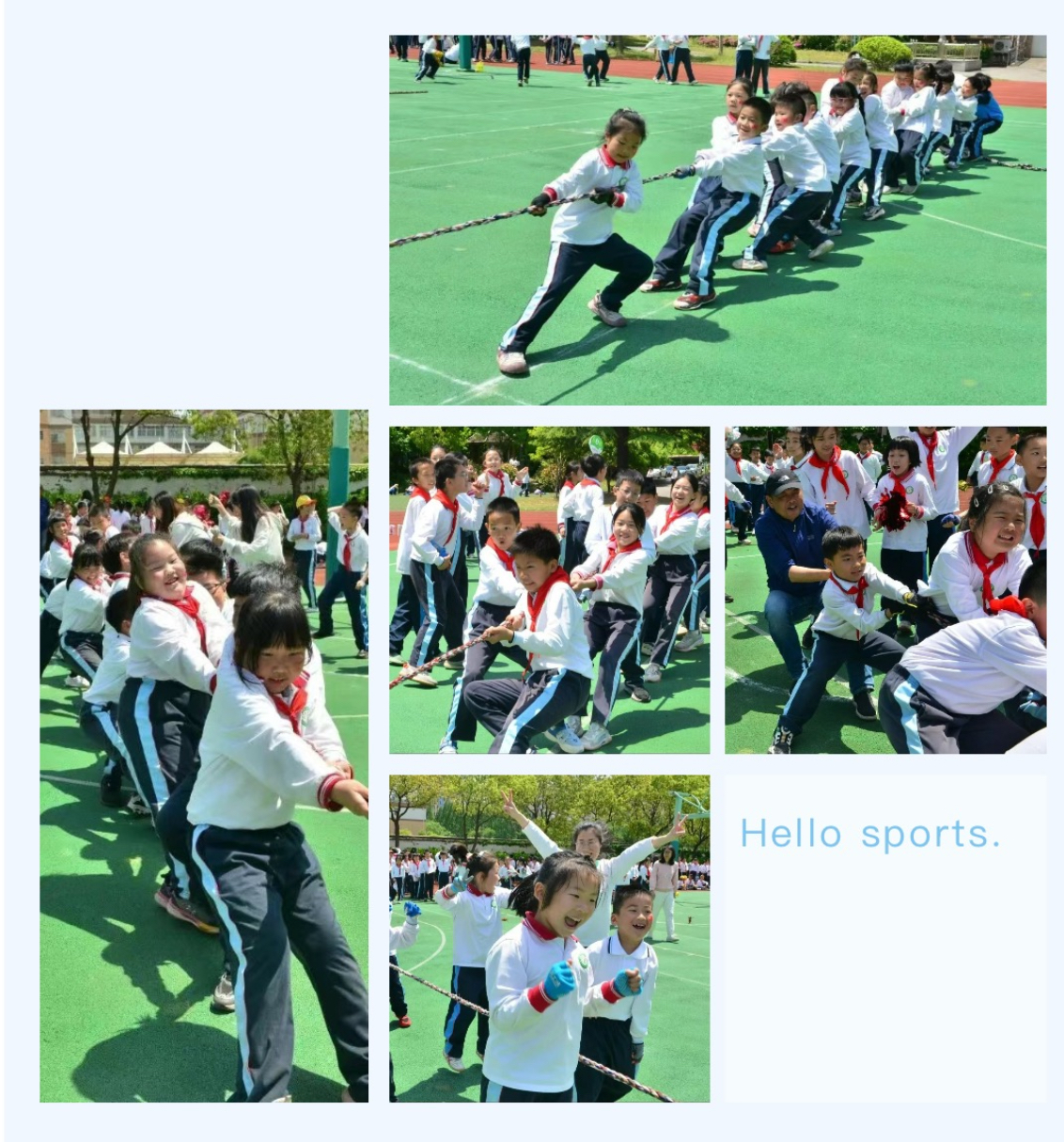 运动会的高潮当属“齐心协力”拔河比赛。师生并肩作战,紧握长绳,口号声、呐喊声响彻云霄。双方势均力敌,绳索紧绷,观众的心也随之悬起。最终,在哨声与欢呼声中,胜利的队伍高举双手,无论输赢,团结与拼搏的精神已深深烙印在每个人心中。