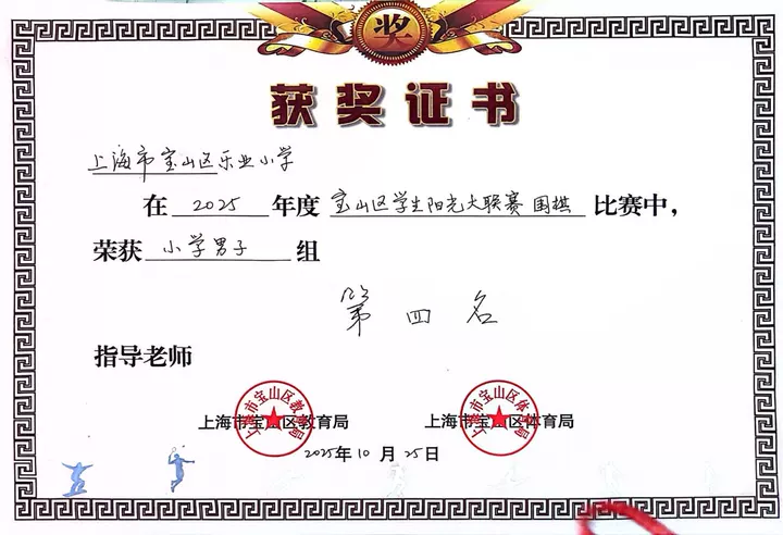 恭喜汪星宇、汤一凡、郑智诚三位小将!愿你们在黑白世界中继续探索乐趣、精进棋艺,在未来的赛场上再创佳绩!未来,乐业小学将持续支持各类特色体育项目发展,让更多学子在兴趣中强健体魄、锤炼品格,绽放独特光彩!