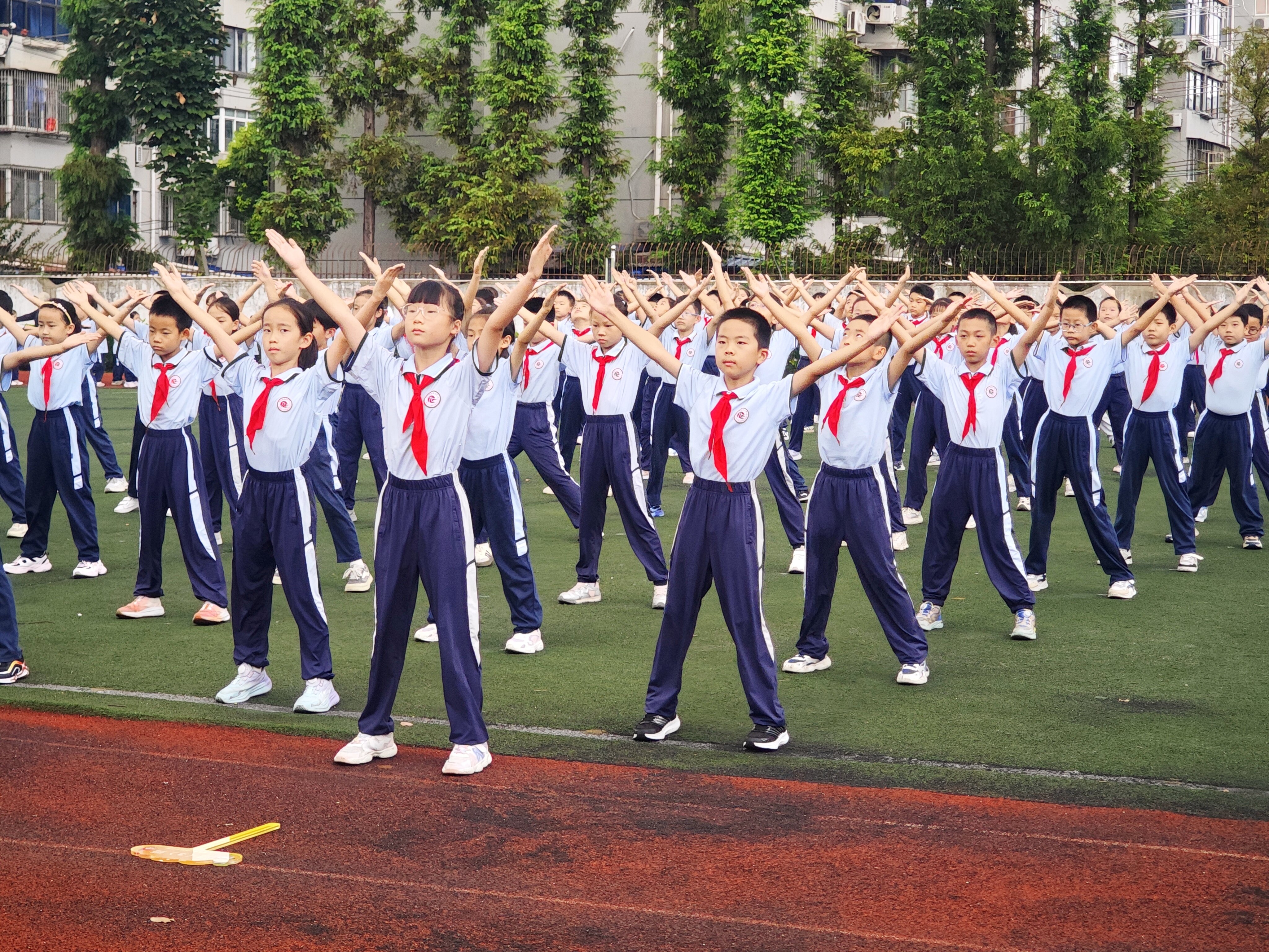 作为学校“每天综合体育活动2小时”工作的重要实践,本次广播操比赛既是对课间操质量的一次全面检验,更是“五育并举”理念的生动落地。赛前,各班级利用体育课、课间活动及课余时间认真备战,体育教师全程指导动作细节,班主任协助组织训练,同学们在反复打磨中不仅提升了动作规范性,更增强了集体凝聚力。