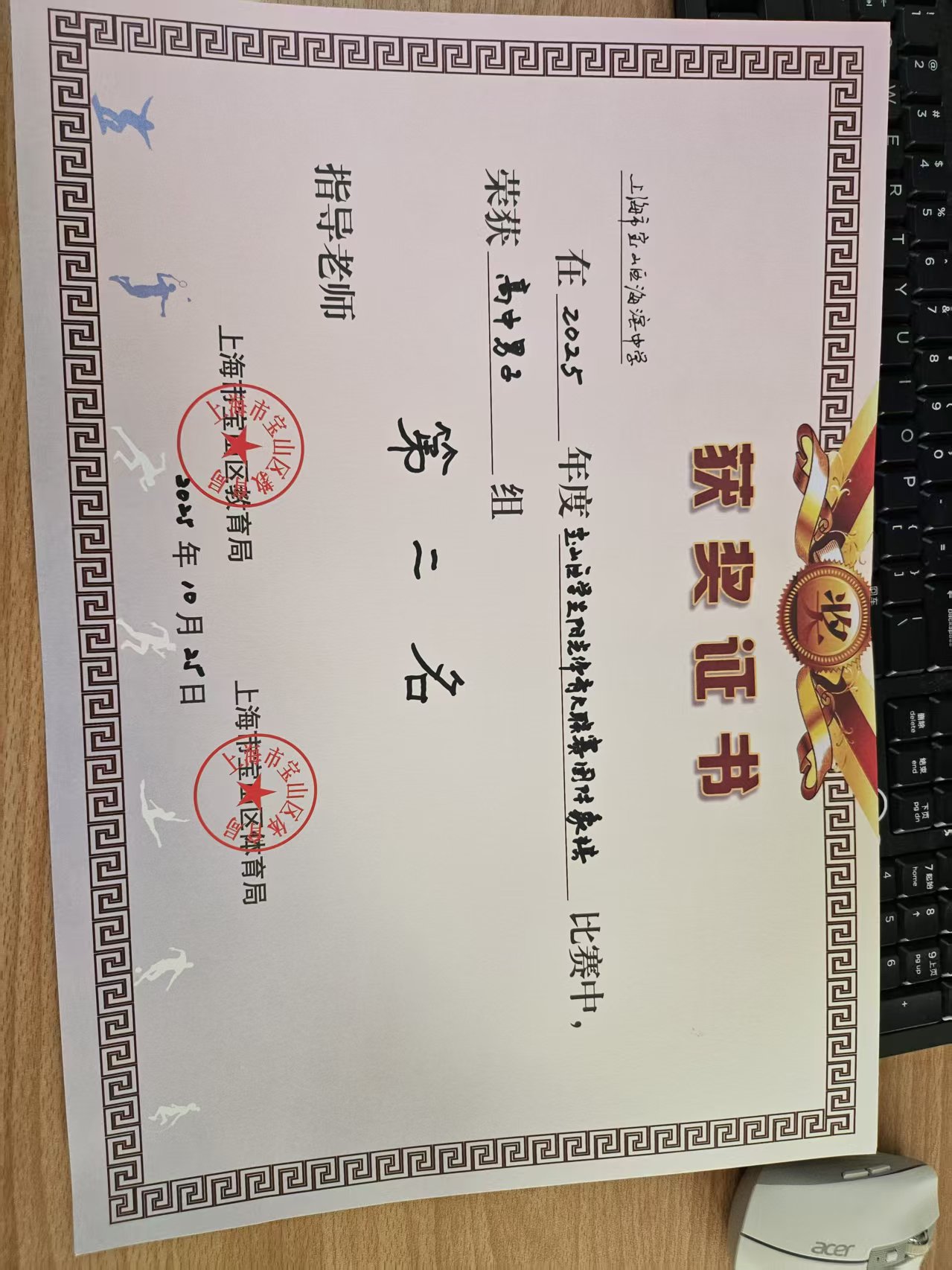 团体第二名