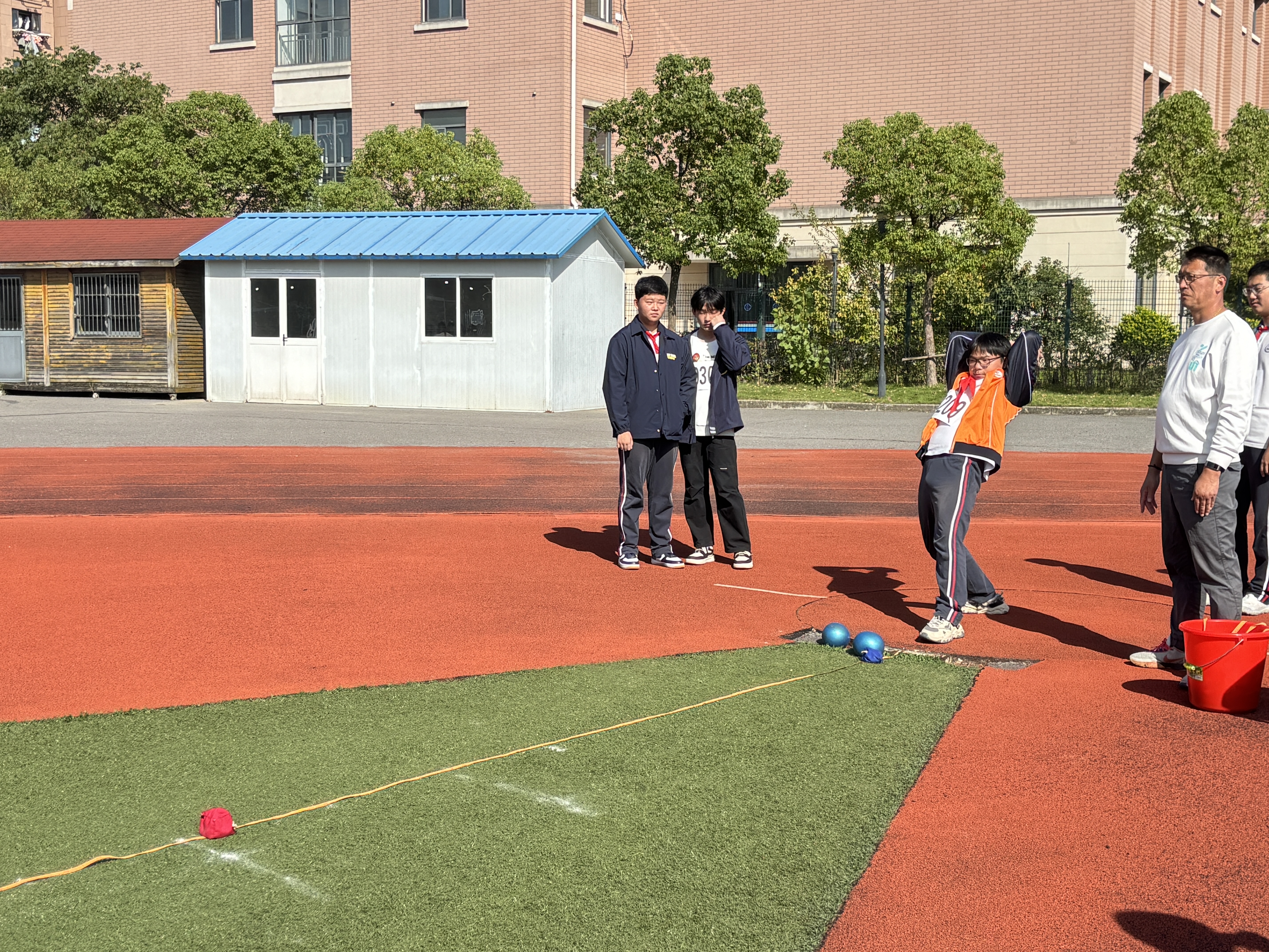 实心球:沉甸甸的实心球被稳稳举起、奋力一掷,划出的弧线展现了少年们不断增长的力量。