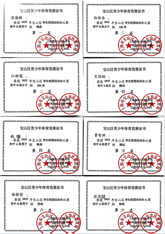 捷报频传,汗水铸就辉煌!在刚刚落幕的2025年上海市青少年体育俱乐部联赛田径比赛暨宝山区学生阳光体育大联赛校园运动会中,我校运动健儿们奋勇拼搏,再创佳绩!
