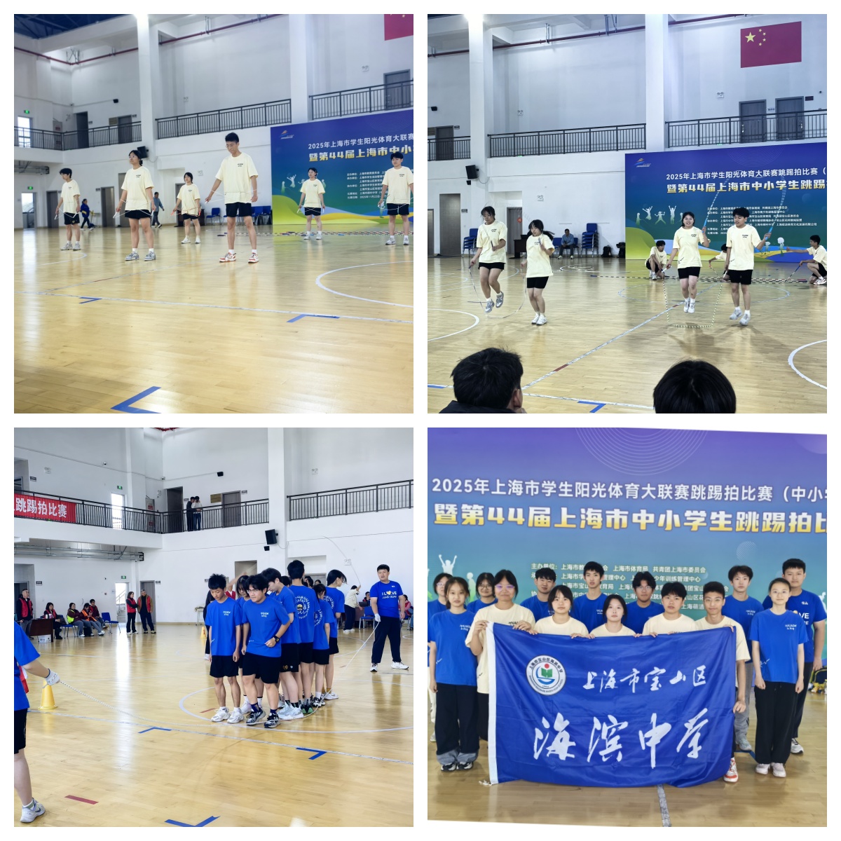 2025年11月23日,2025年上海市学生阳光体育大联赛跳踢拍比赛暨第44届上海市中小学生跳踢拍比赛(中小学校)在顾村中学圆满落幕。上海市宝山区海滨中学花样跳绳社团表现惊艳,凭借扎实的功底、默契的配合与创新的编排,在高中组多个项目中脱颖而出,一举斩获花样跳绳集体自编赛一等奖、长绳B一等奖两项重磅荣誉,为学校赢得了荣光。