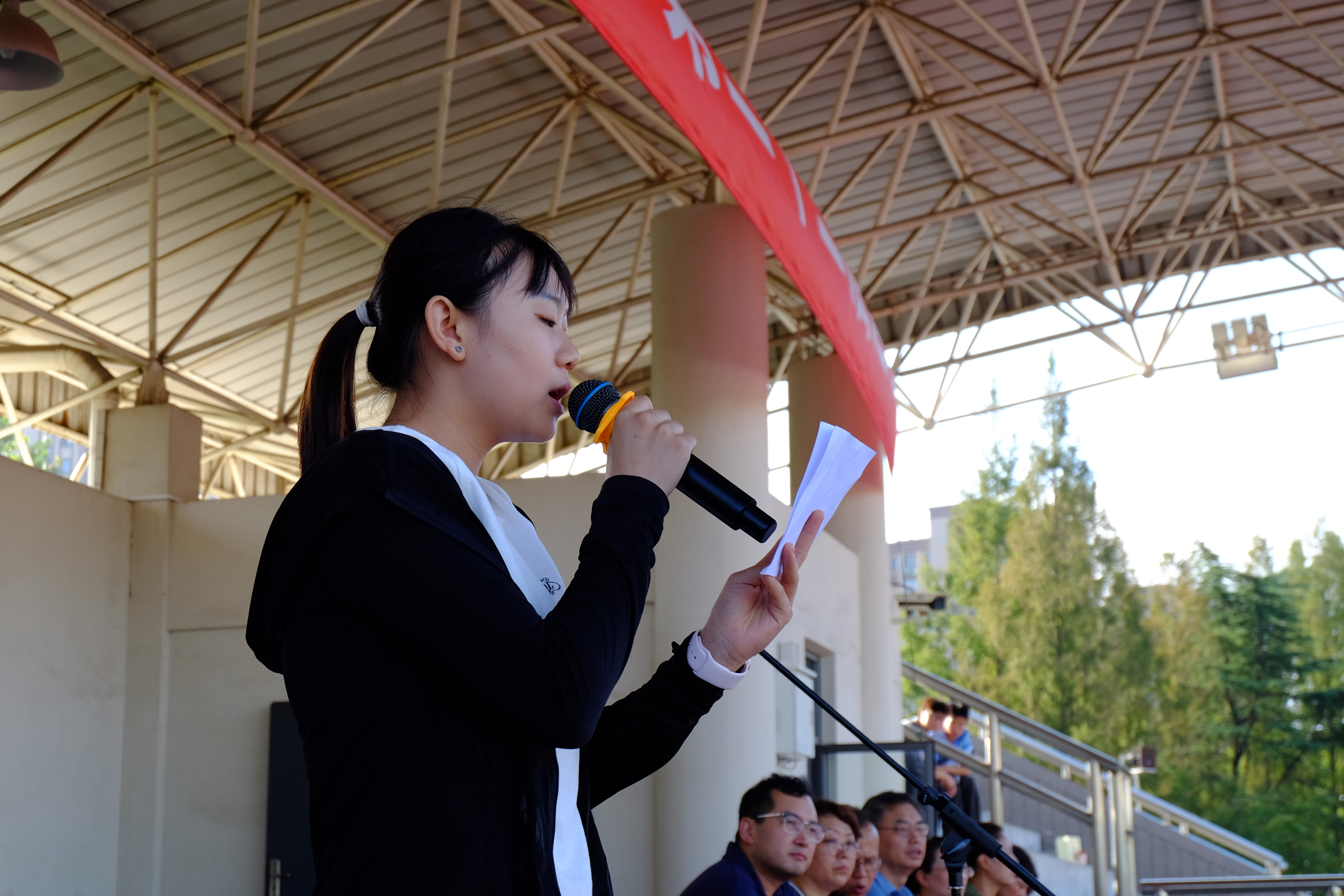 罗惠心老师、孙佳慧同学分别代表本届运动会裁判员、运动员宣誓,将公正与坚定传递给了在场的每一个人。