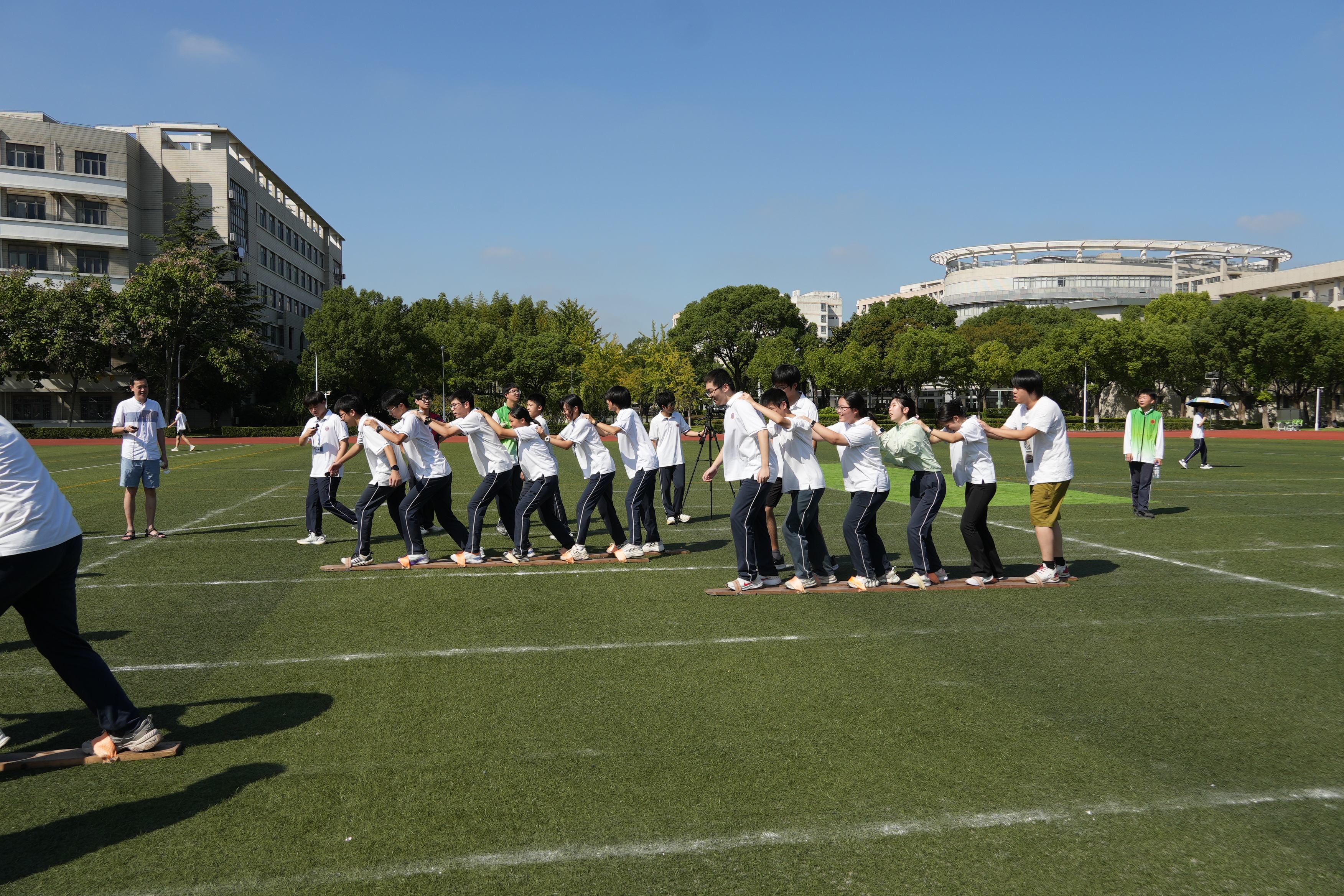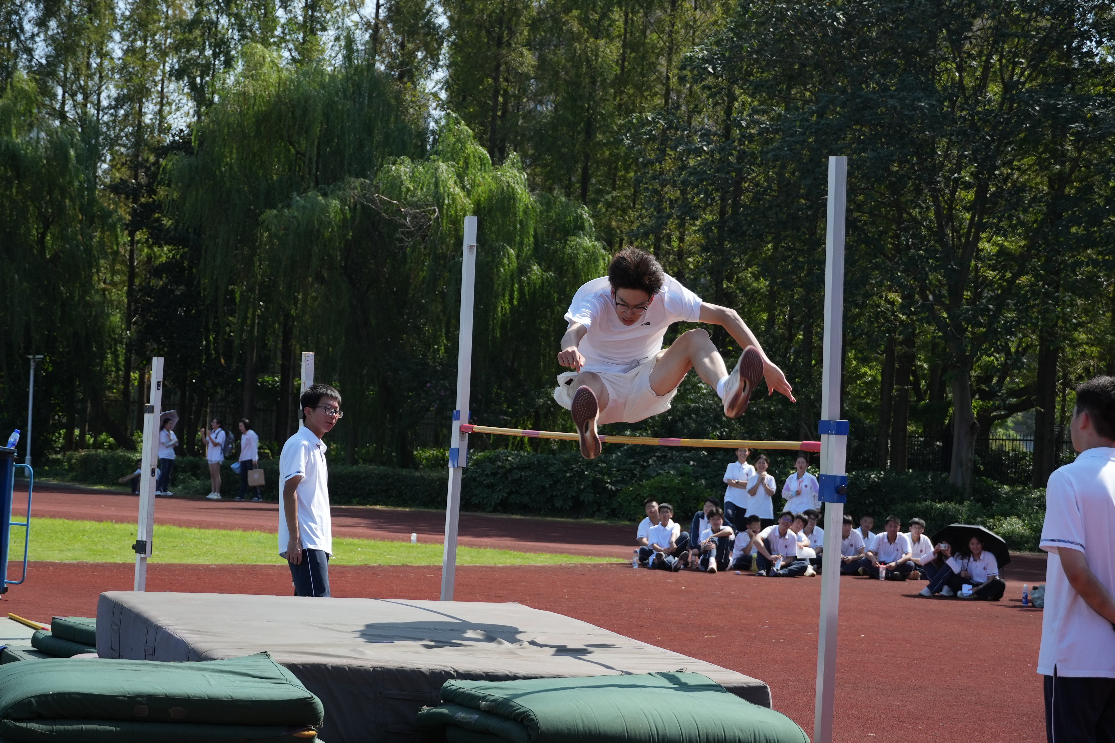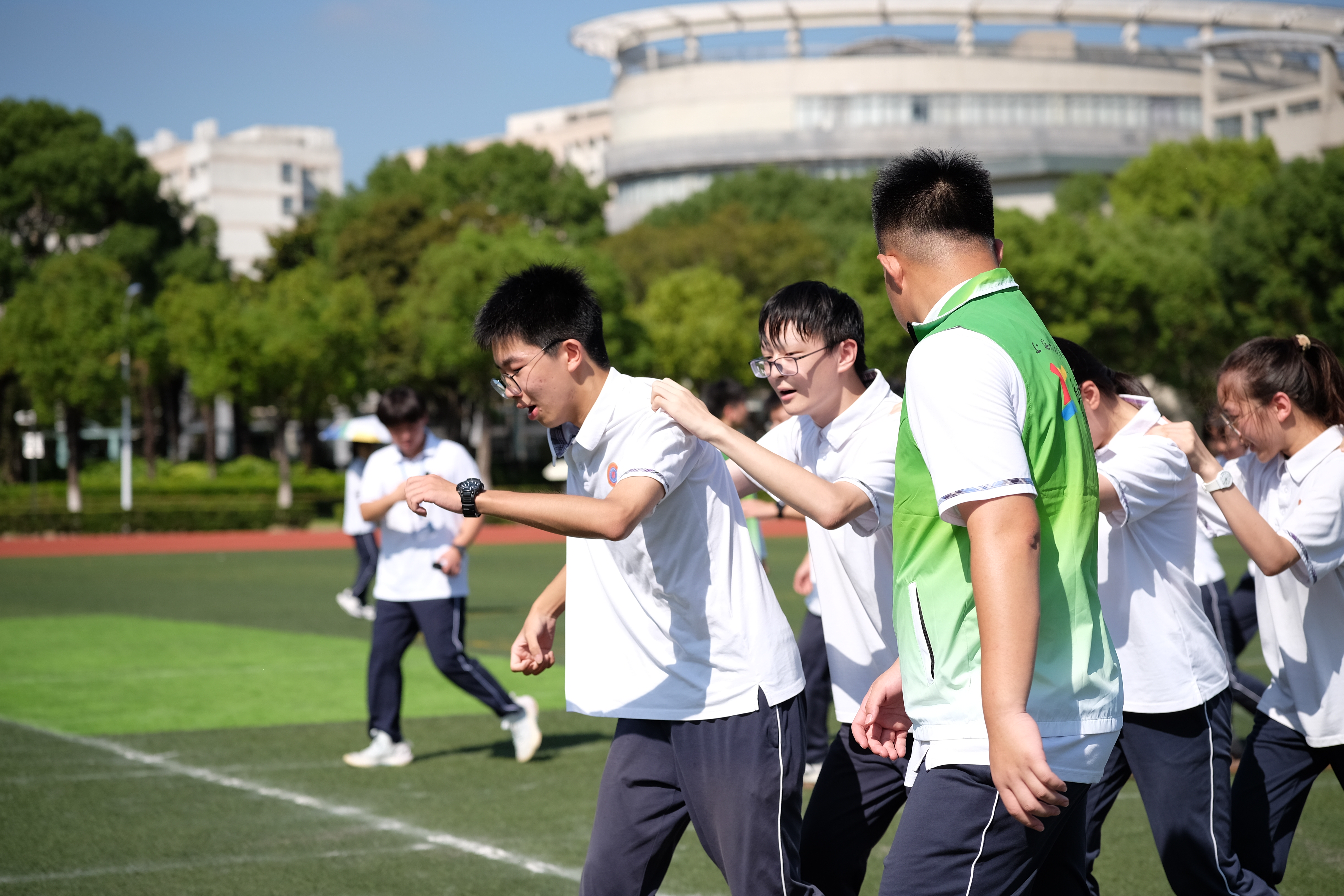 与此同时,师生裁判员们在岗位上以严谨专业的裁判素养对比赛进行公正严明的判决;医务老师和默默陪伴的班主任们则守护着运动员的安全。他们的默默奉献,辛勤付出保证了运动会的顺利进行,让场上场下流动着温暖动人的情谊。