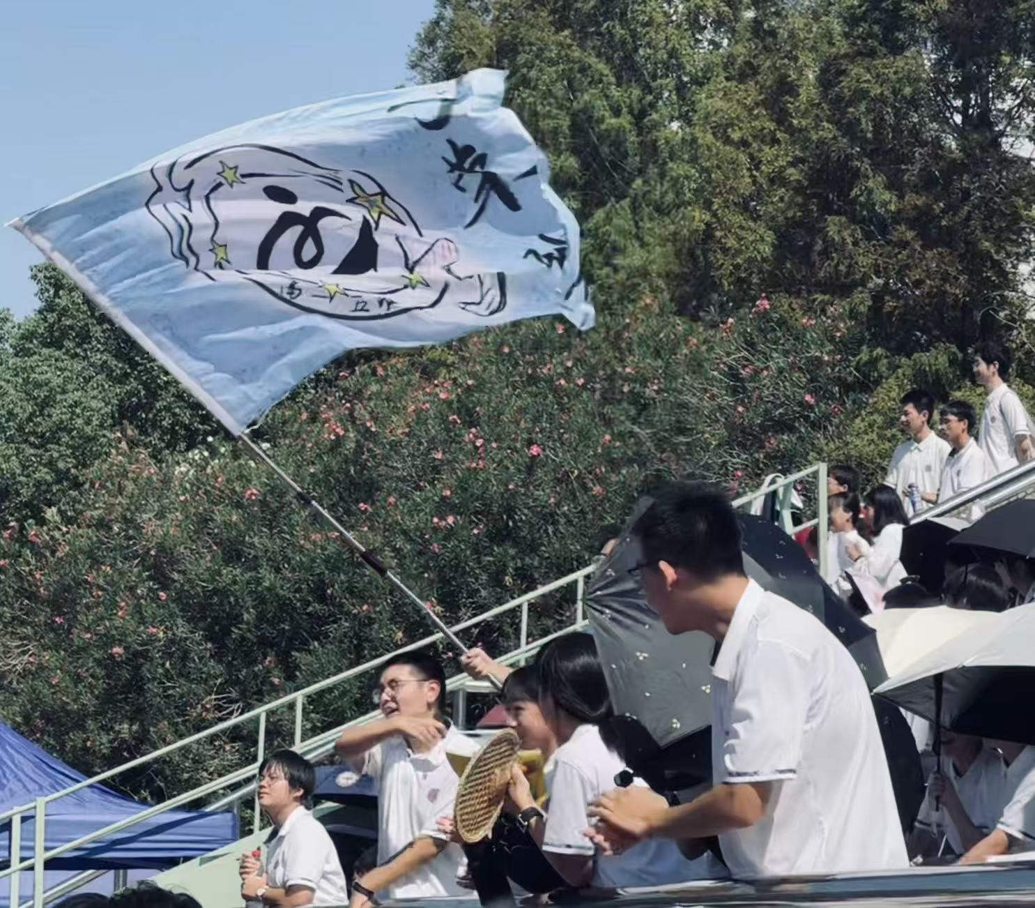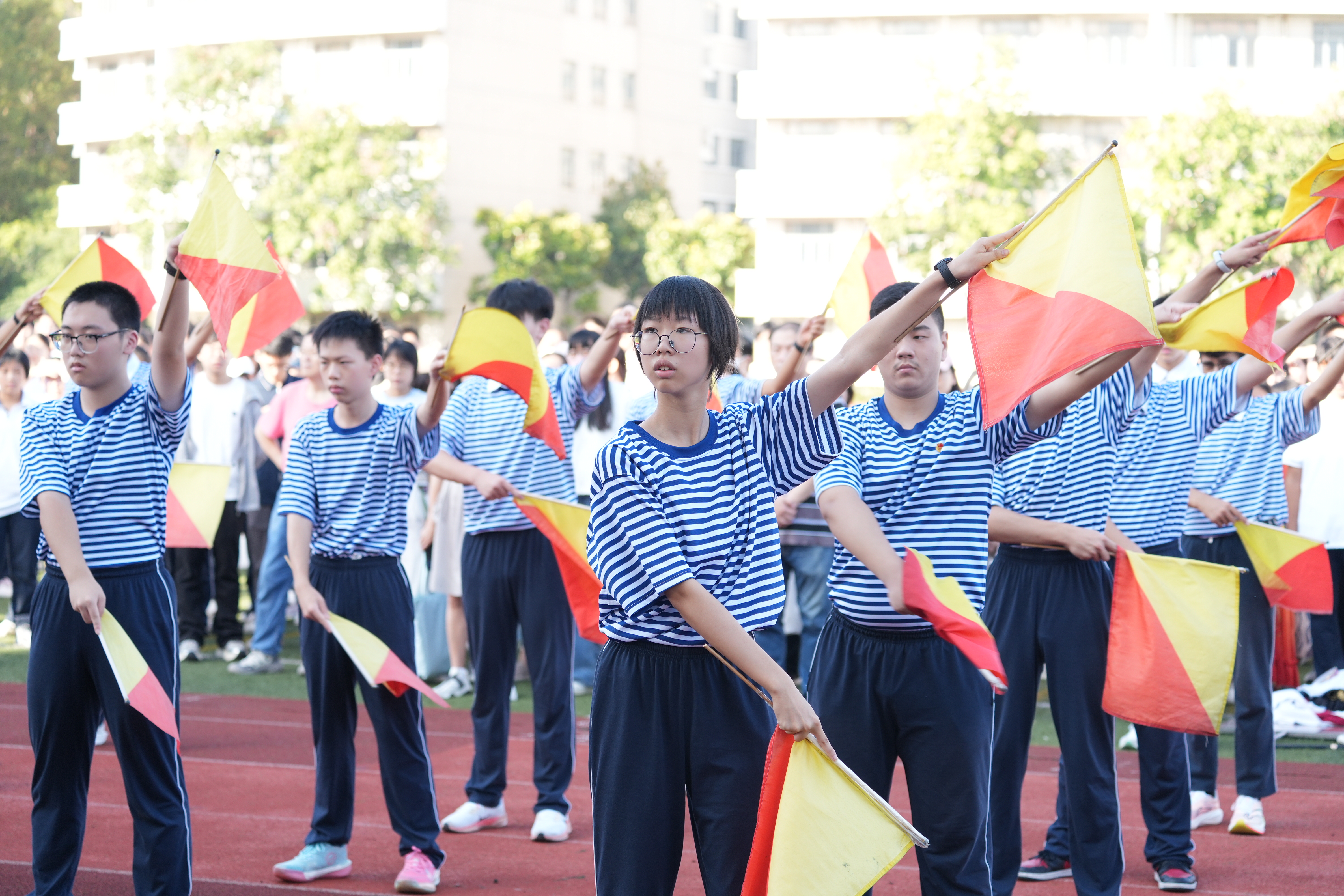 高一年级51名同学组成了特别的旗语方阵带来精彩表演