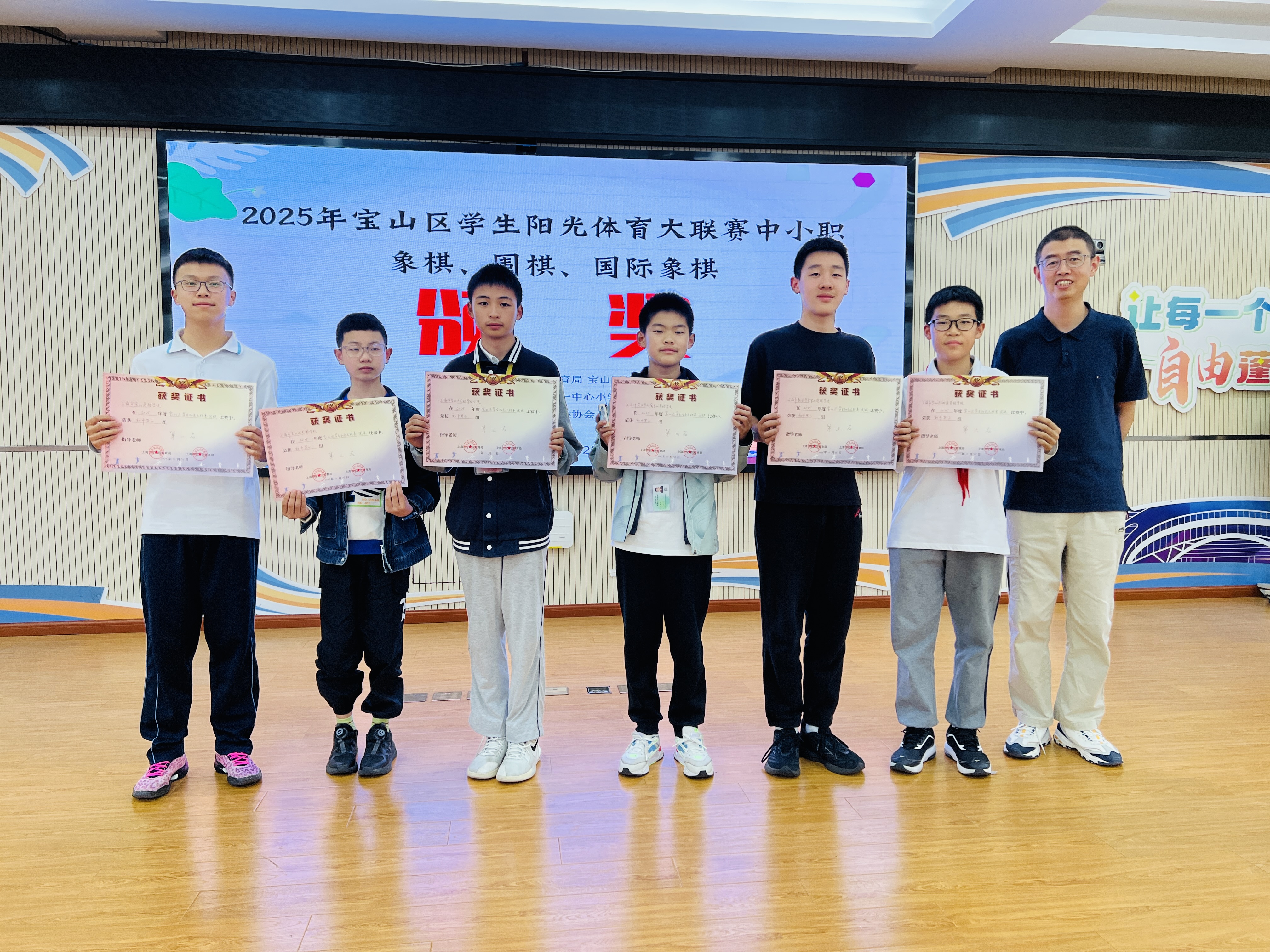 经过一天的激烈角逐,各棋类组别个人前八名及团体冠亚季军相继出炉。闭幕式上,宝山区棋类协会会长张磊嘉宾为获奖选手及代表队颁发荣誉证书与奖牌,现场掌声雷动。获奖选手们手捧荣誉,与队友、教练合影留念,定格这一珍贵时刻。