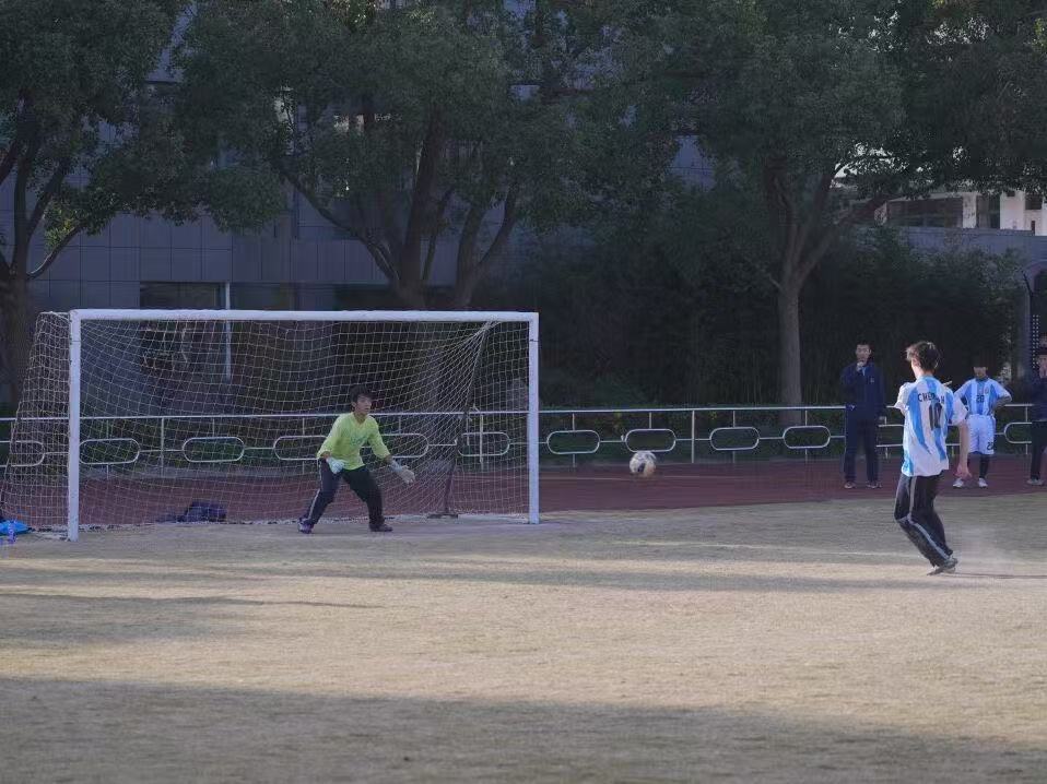 经过为期一个多月的激烈比赛,上海市行知中学第35届“行知杯”足球赛迎来了最后的校级决赛。高一、高二年级共23支队伍,经过激烈的角逐,高一(12)班与高二(6)班进行冠亚军比赛,高一(5)班和高二(3)班进行季军争夺战。 赛前,主持人章梦元老师致开场词,阐述了“行知杯”所倡导的知行合一、协力共进的赛事内涵。随后,92届校友、首届冠军成员周海波登台寄语,他以学长身份分享了对母校的深厚情感,并勉励场上球员全力拼搏,展现青春风貌。 充分热身后,两场顶尖对决旋即展开。冠军赛的上半场,高二(6)班控球占优。一次解围后,球落至后卫吴宣宪脚下,他抓住中路空当,快速突进连过两人,起脚劲射直入死角,首开纪录,高一(12)班立刻以右路犀利突破回应。半场结束前,高二(6)班在门前混战中由马天逸机敏补射,再下一城。下半场,高二(6)班凭借高压逼抢造成对方手球,队长朱从翔点球命中,扩大比分。然而,三球领先并未终结悬念,高一(12)班掀起绝地反扑,其中7号球员在禁区前沿的一记凌空抽射势大力沉,击中横梁,险些改写比分。比赛在高速的攻防转换与持续的对抗中,直至终场哨响。 季军赛中,高二(3)班核心陈润禾在左路表现活跃,频频冲击对方防线。下半场白热化阶段,他左路连续突破后突施冷箭,可惜射门偏出。高一(5)班王智博、冯张尧则多次利用反击制造威胁,但临门一脚欠佳。比赛尾声,高二(3)班获得禁区前任意球,陈润禾踢出贴地斩穿越人墙,却被反应神速的高一(5)班门将徐剑侧身扑出。 最终,比赛被拖入点球决战。高一(5)班门将徐剑成为关键人物,他连续判断准确,神勇扑出多次射门。随着高一(5)班张宸涵踢入最后一球,高一(5)班以2:1的比分锁定胜局,惊险夺得季军。 本届“行知杯”足球赛至此圆满落幕。赛事中,球员的个人技术与团队的战术协作相得益彰,共同缔造了无数精彩瞬间。曾夺得首届赛事桂冠的校友们,也始终心系母校发展。赛后,92届校友吴瑞峰、周海波、金建锋与学校领导共同为获胜球队与金靴奖得主颁奖。校友的关注与支持,为今日的赛场注入了深厚的历史温度与前进动力。