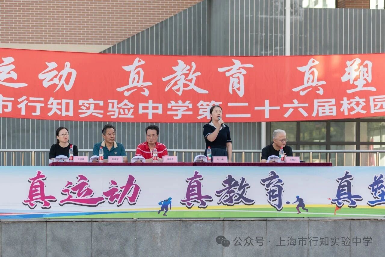 胡艳校长宣布“上海市行知实验中学2025年秋季运动会正式开幕”。