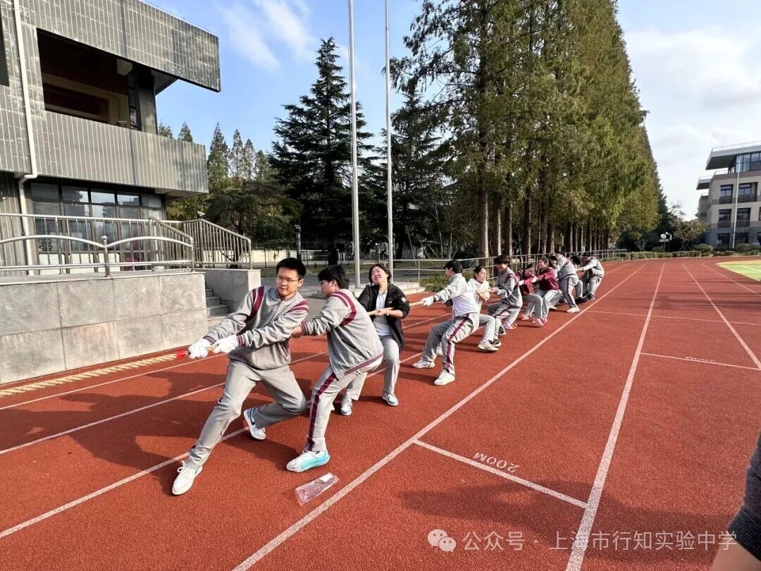 2025年10月27日,秋阳正好,上海市行知实验中学操场欢腾不息。初二、高一年级“悦动日”系列赛拔河赛火热开锣。