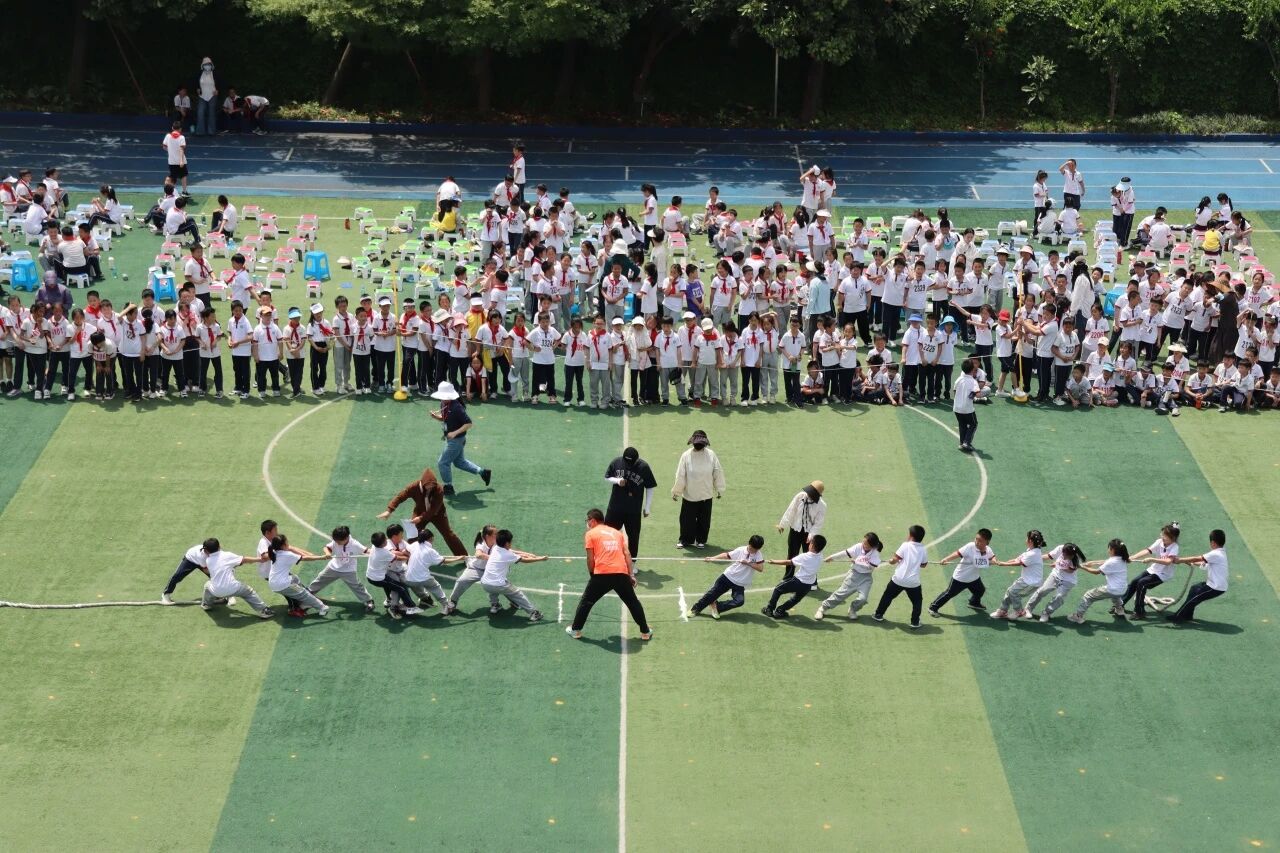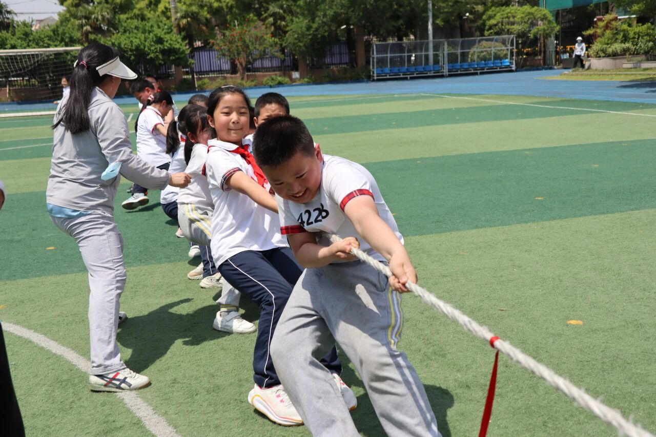 拔河比赛将运动会气氛推向高潮。麻绳两端,“小战士”们紧握绳索,双脚牢牢钉在地面,齐心协力形成合力;面对落后,在震耳欲聋的助威声中,不到最后绝不松手,最终实现逆转夺冠。那一刻,欢呼声、呐喊声响彻云霄,凝聚着团结一心、永不言败的集体力量。