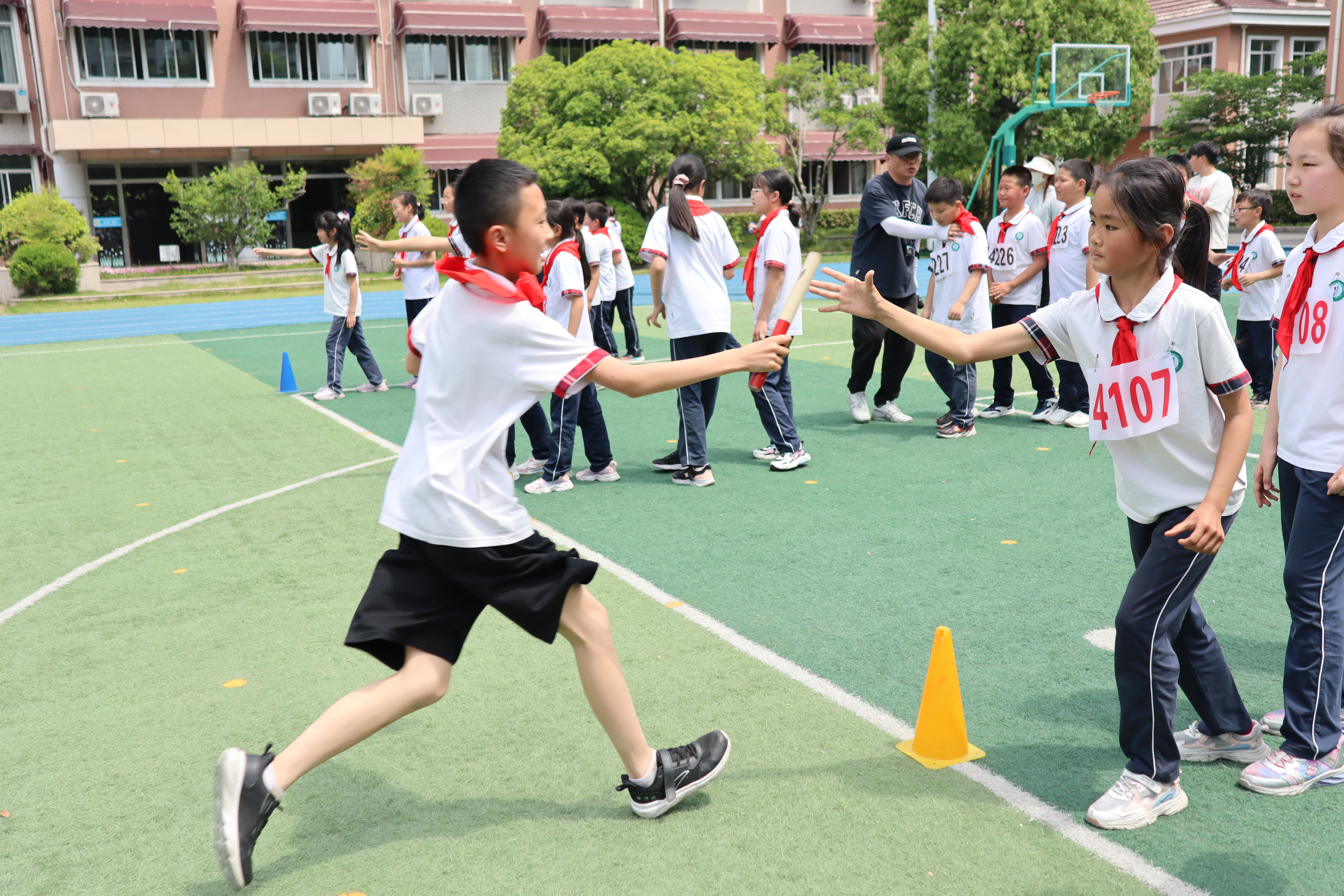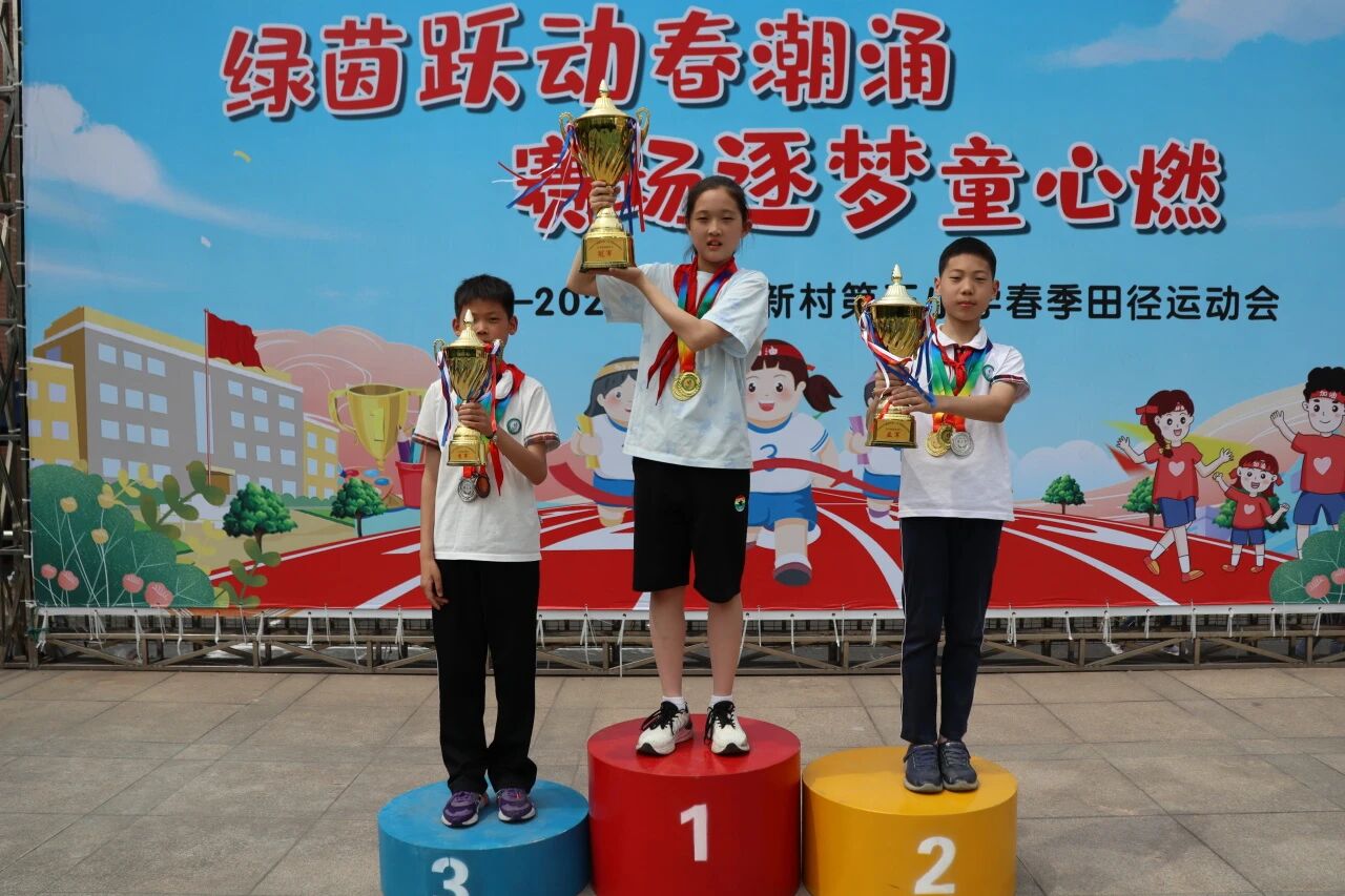 午后,明媚的春光洒满月三校园的操场,月三健儿用汗水浇灌的荣耀时刻如约而至。领奖台上,校管理团队的老师们给获奖的选手和班级代表颁奖。当金灿灿的奖牌挂在奋力拼搏的学童颈间,当沉甸甸的奖杯被获胜班级紧紧抱进怀中,这些荣誉不仅是对胜负的嘉奖,更是对体育精神的礼赞。