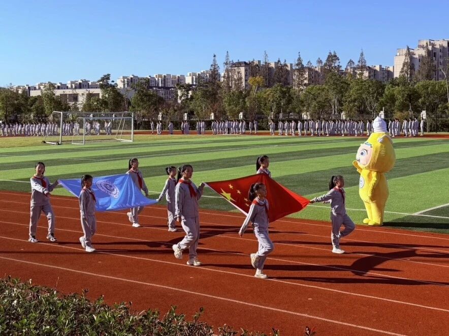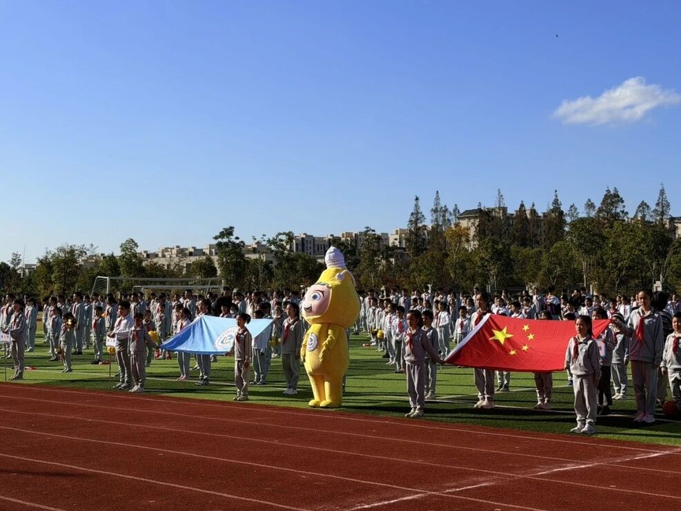 入场式前,吉祥物“亮亮”早早在跑道旁挥舞手臂,向陆续进场的班级代表队热情打招呼。伴随着激昂的运动员进行曲,各班级方阵依次登场:参赛选手们穿着统一运动服,迈着整齐步伐喊出响亮口号;有的带来精彩地集体舞、韵律操表演,创意满满的展示让操场掌声不断。