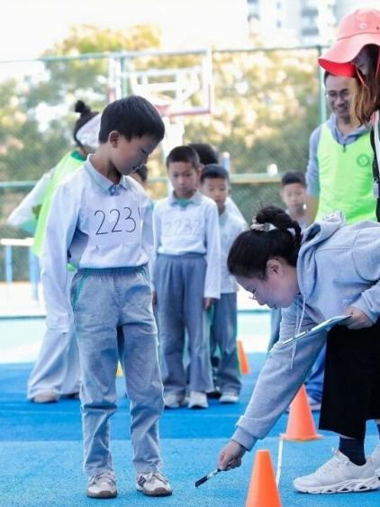 1-2年级运动员的赛场设在热闹的篮球场,设有跳远、丢沙包和迎面接力等充满趣味的比赛项目。这不仅是对小水滴们勇气与活力的小考验,更是让大家在玩耍中感受运动快乐,让每一位低年级小朋友都能在赛场收获笑容,在参与中爱上运动。
