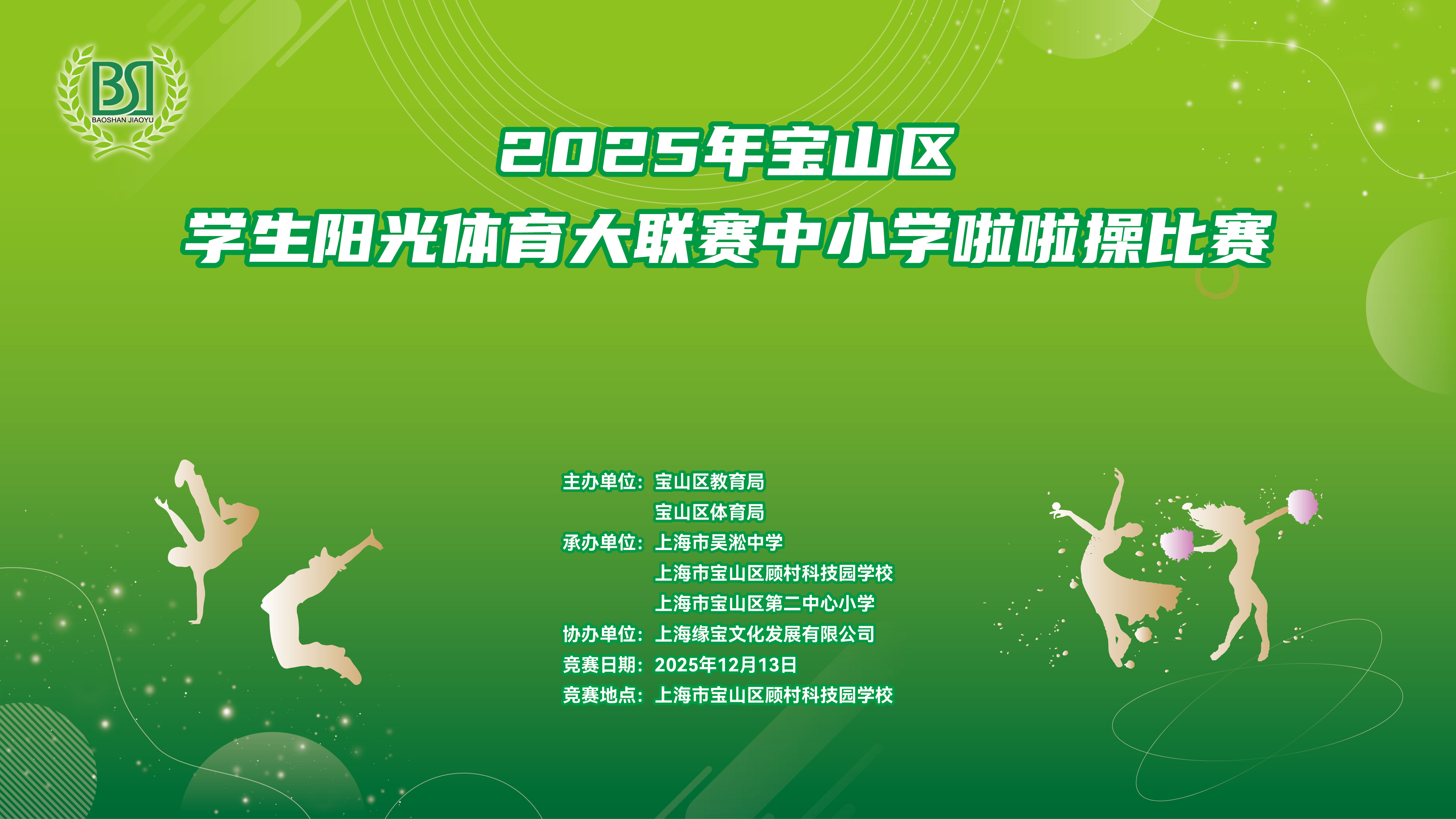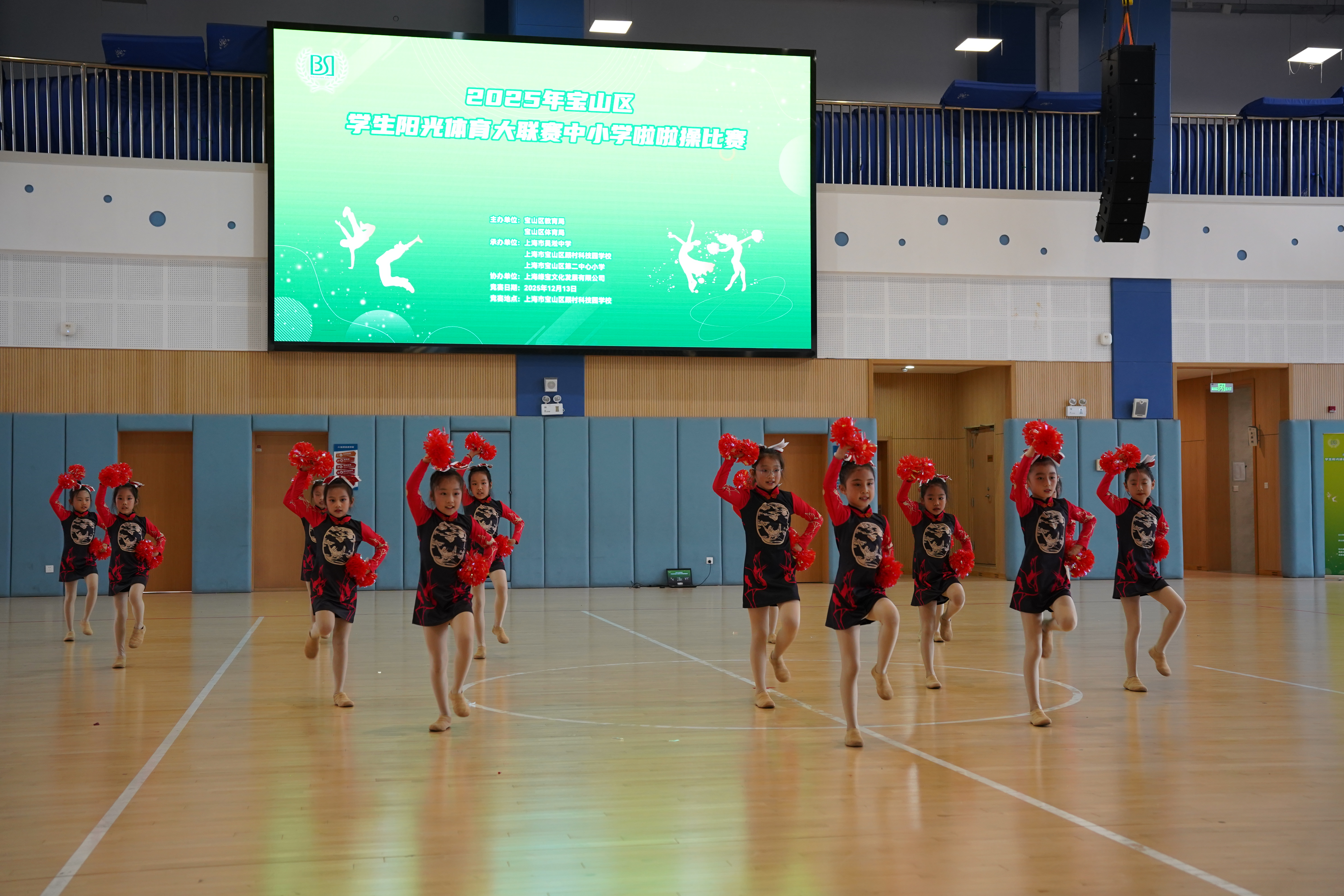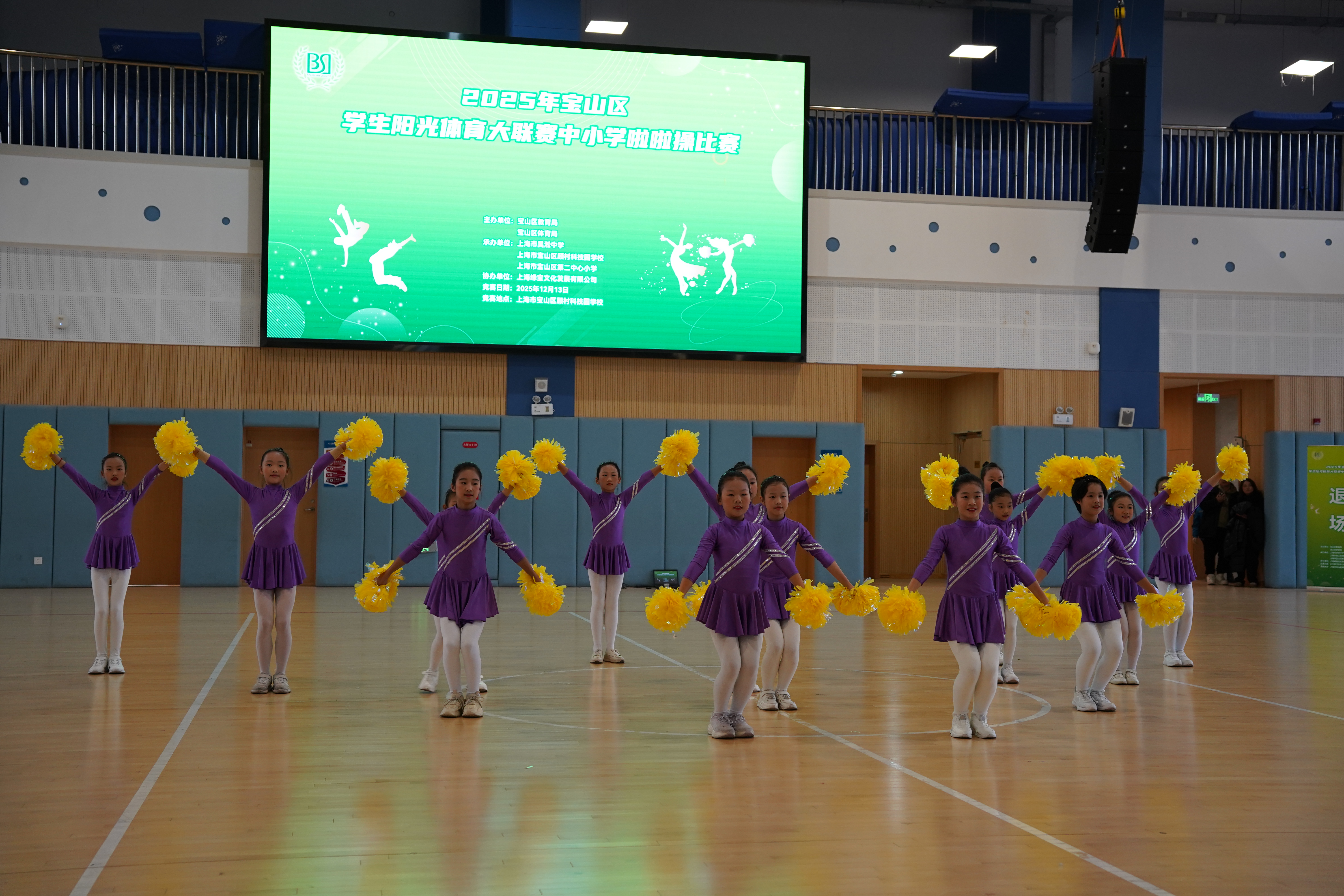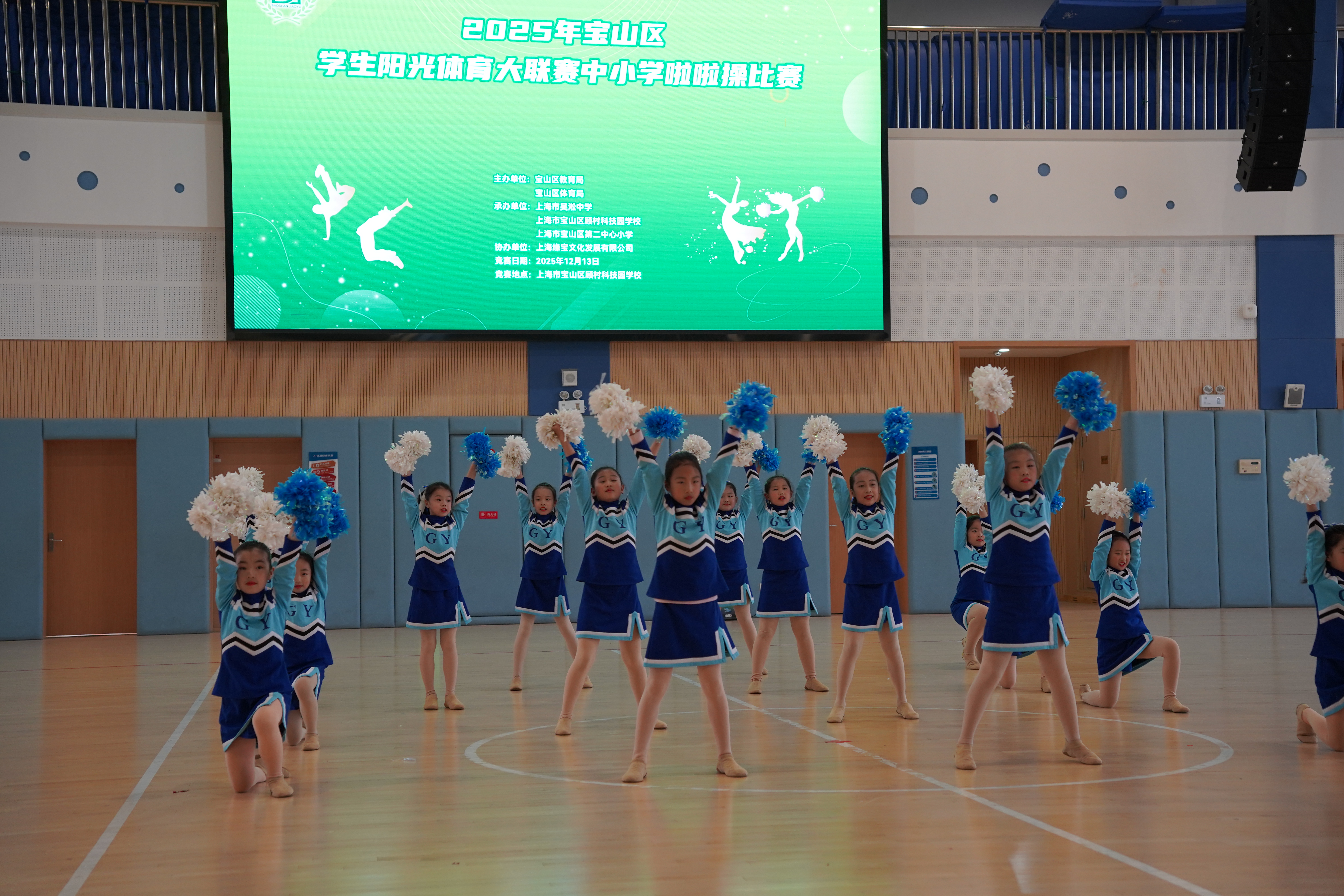 雨丝轻舞润赛场,青春热血暖寒冬!2025 年 12 月 13 日,尽管阴雨绵绵,宝山区学生阳光体育大联赛中小学啦啦操比赛在顾村科技园学校热力开赛!淅沥雨声并未阻挡少年们的热情,反而让这场赛事更添一份拼搏的底色。作为宝山区阳光体育系列活动的年度重头戏,本次比赛由上海市宝山区教育局、上海市宝山区体育局联合主办,上海市吴淞中学、宝山区顾村科技园学校、宝山区第二中心小学共同承办,上海缘宝文化发展有限公司协办,吸引全区 35 所学校, 572 名学子同台竞技,72 套精心编排的套路轮番上演,用蓬勃朝气为阴雨冬日的宝山注入滚烫活力。