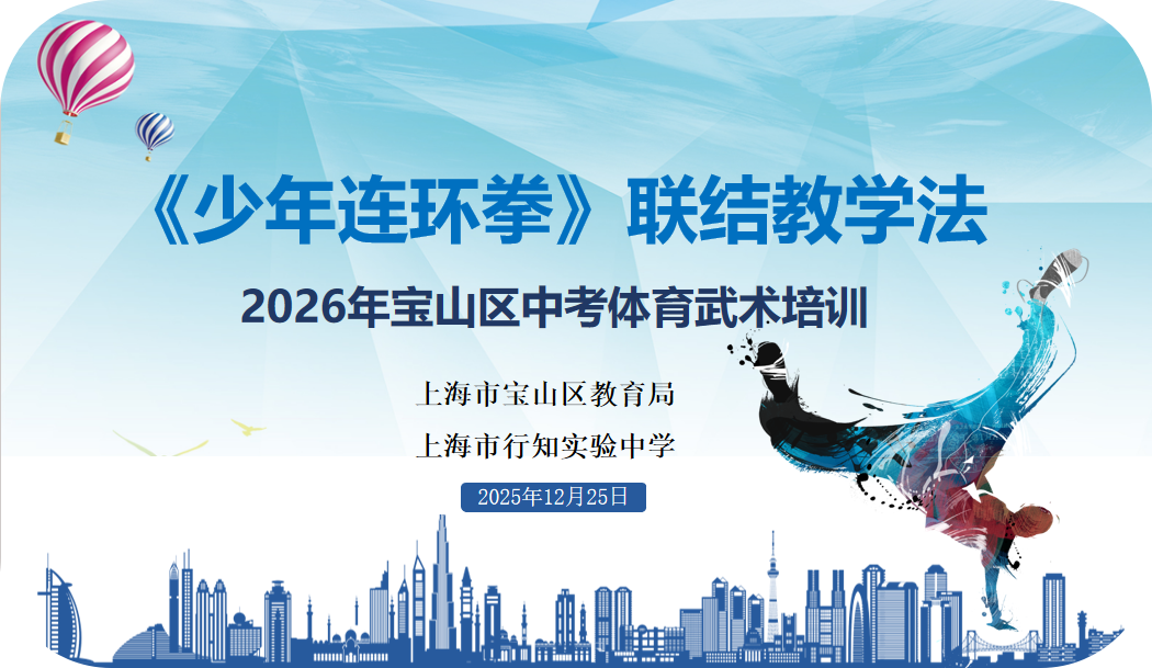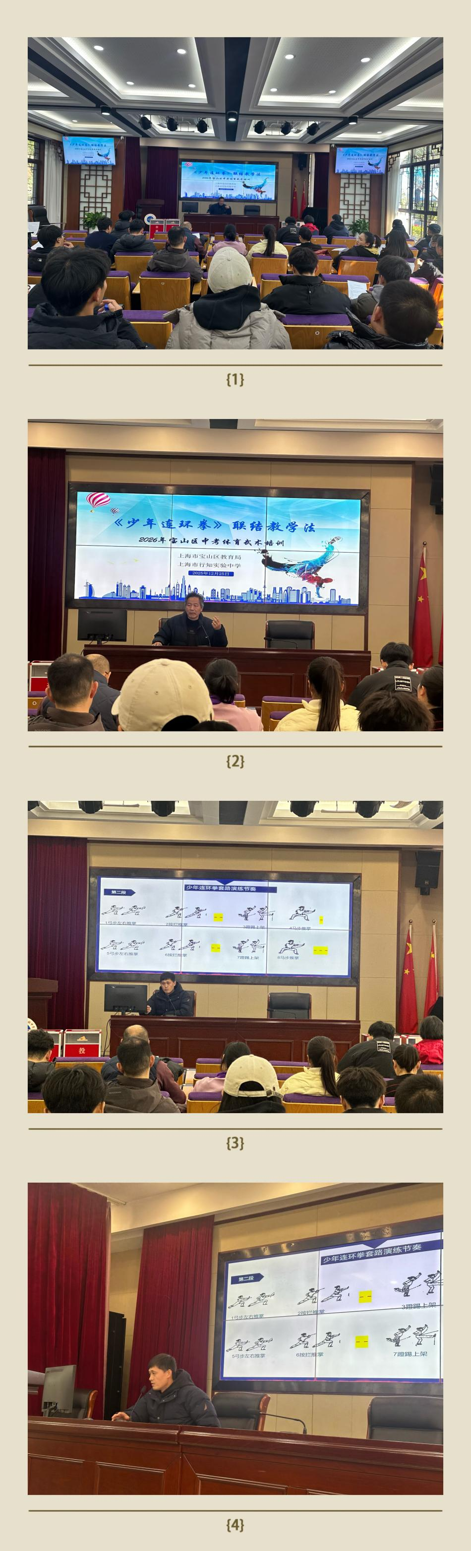 为全面提升宝山区初中武术教学质量水平,12月25日,宝山区教育局组织开展了武术项目专项培训会。本次培训集实践操练、教学研讨与工作部署于一体,全区各初三体育教师积极参与,为明年中考体育工作的顺利实施奠定了坚实基础。